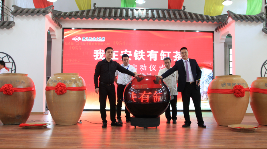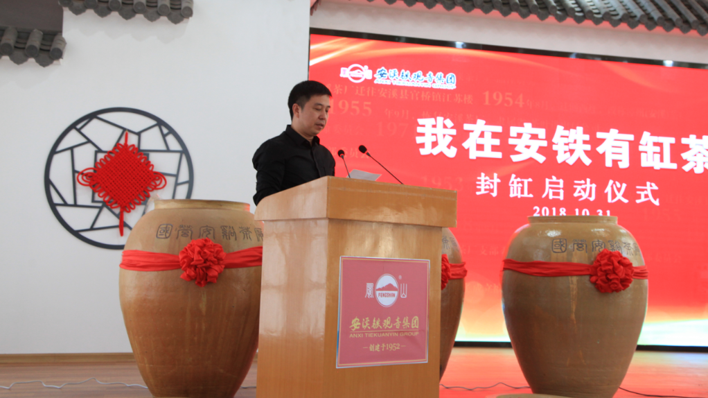 總裁夏建平先生宣布啟動儀式正式開始,安鐵集團董事長劉紀恒、副董事長王大慶、總裁夏建平、董事吳厚國、副總裁陳金發(fā)、副總裁呂心舒參加封缸活動,并在現(xiàn)場各封一缸138Kg的鳳山新茶。總裁夏建平和質(zhì)量總工程師洪加泉先生作為代表進行封缸。