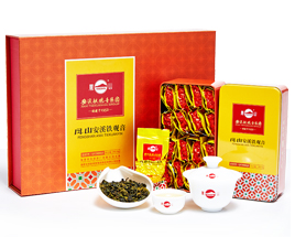 產(chǎn)品原料均來自鐵觀音發(fā)源地——安溪高海拔巖石基質(zhì)土壤種植的茶樹,具有“鮮、香、韻、銳”之綜合特征。香氣高強,濃郁持久,花香鮮爽,醇正回甘,回蕩情懷,更是觀音韻足。茶湯金黃綠色,清澈明亮,嫩黃帶綠,如春色無涯,美不勝收。飲后,口、舌、齒、齦均有刺激清銳的感受。