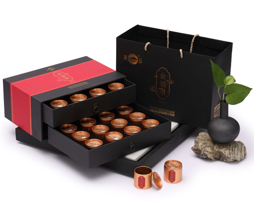 金駿眉茶青為野生茶芽尖,摘于武夷山國(guó)家級(jí)自然保護(hù)區(qū)內(nèi)海拔800-1200米高山的原生態(tài)野茶樹(shù),6至8萬(wàn)顆芽尖方制成一斤金駿眉,其外形黑黃相間,烏黑之中透著金黃,顯毫香高,干茶細(xì)聞的淡淡的甜香,開(kāi)湯湯色為金黃色,啜一口入喉,甘甜感頓生。其水、香、味似果、蜜、花、薯等綜合香型,滋味鮮活甘爽,喉韻悠長(zhǎng),沁人心脾,葉底舒展后,芽尖鮮活,秀挺亮麗。