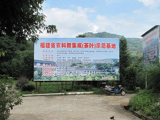 項目與福建省農(nóng)業(yè)科學院茶葉研究所共同開展聯(lián)合研究,經(jīng)從茶卷葉蛾和中華大刀螳僵蟲分離并鑒定了對茶卷葉蛾和茶小卷葉蛾幼蟲有有較強的毒力的環(huán)鏈棒束孢I. cateniannulata,并初步篩選了其最適培養(yǎng)條件。另篩選出了一個對柑橘灰象甲具有高毒力的殺蟲真菌球孢白僵菌菌株,同時為提高折僵菌的速效性和防治效果,我們測定了五種植物源農(nóng)藥對球孢白僵菌孢子的抑制作用,試驗結(jié)果表明,苦參堿和苦皮藤素與球孢白僵菌XJBb3005的相容性較好,,除蟲菊素在在一定濃度下對孢子的萌發(fā)卻具有嚴重的抑制作用,印楝素和藜蘆堿與球孢白僵菌的相容性差。該項目共在全省建立示范基地20余個,其中2個掛牌基地:在閩東重點示范低水溶性農(nóng)藥艾法迪、唑蟲酰胺等,并在福安市坦洋茶場四甫工區(qū)建立“茶樹病蟲害綠色防控綜合示范基地”(圖2),示范10000余畝,推廣10余萬畝。示范區(qū)全年減少農(nóng)藥使用次數(shù)4次以上,有效控制了茶園害蟲的發(fā)生,降低了人工成本,畝增經(jīng)濟效益500元以上,農(nóng)殘符合茶葉的質(zhì)量安全要求。